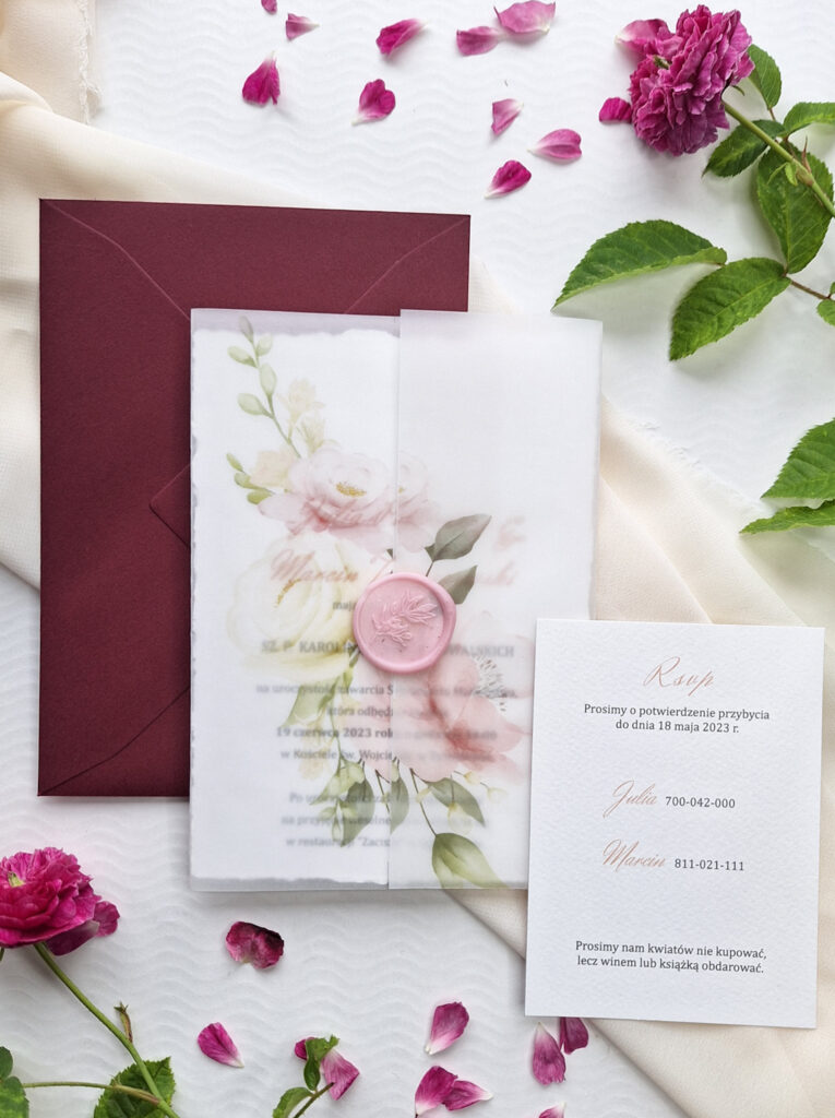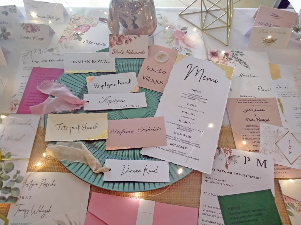 Wybierając zaproszenia z naszego sklepu dopasujemy do Waszych zaproszeń dodatki,