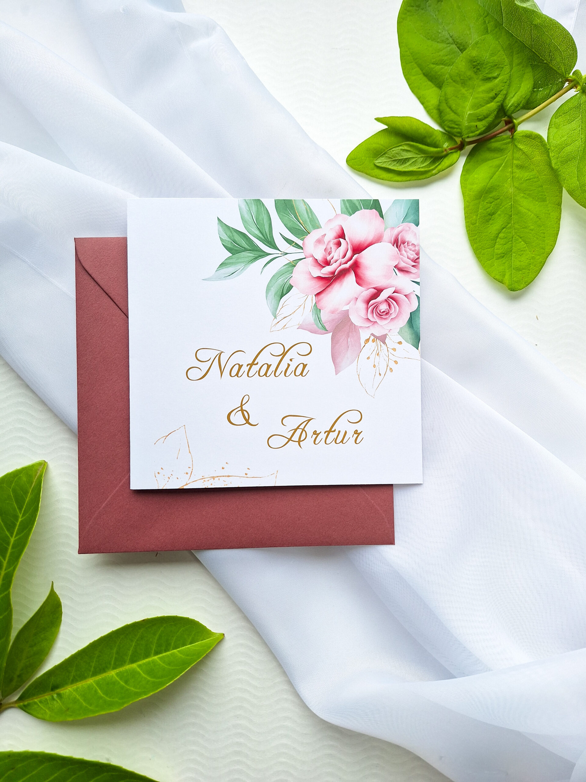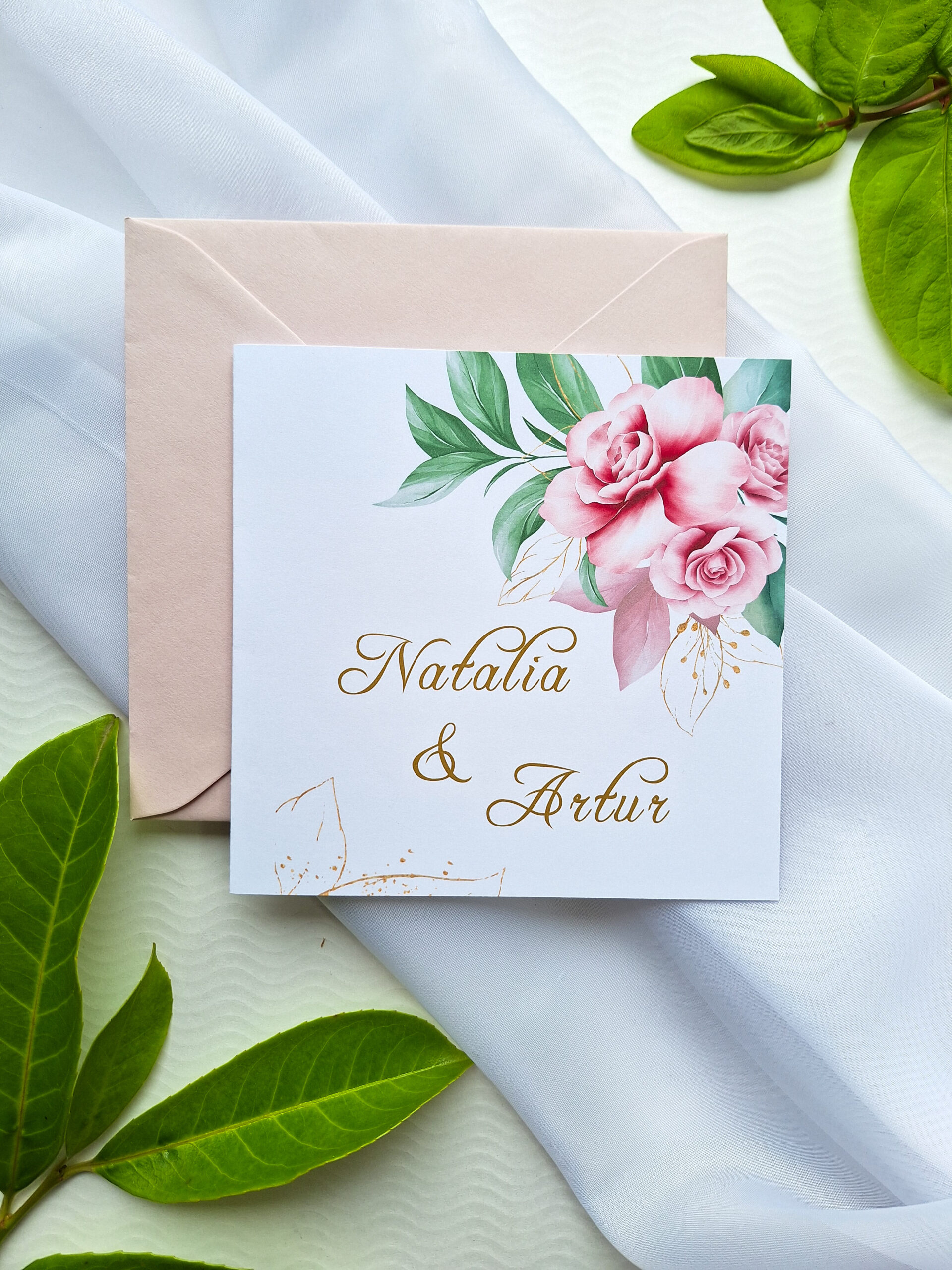 • kopertę pasującą do zaproszenia (różowa lub biała) do wyboru