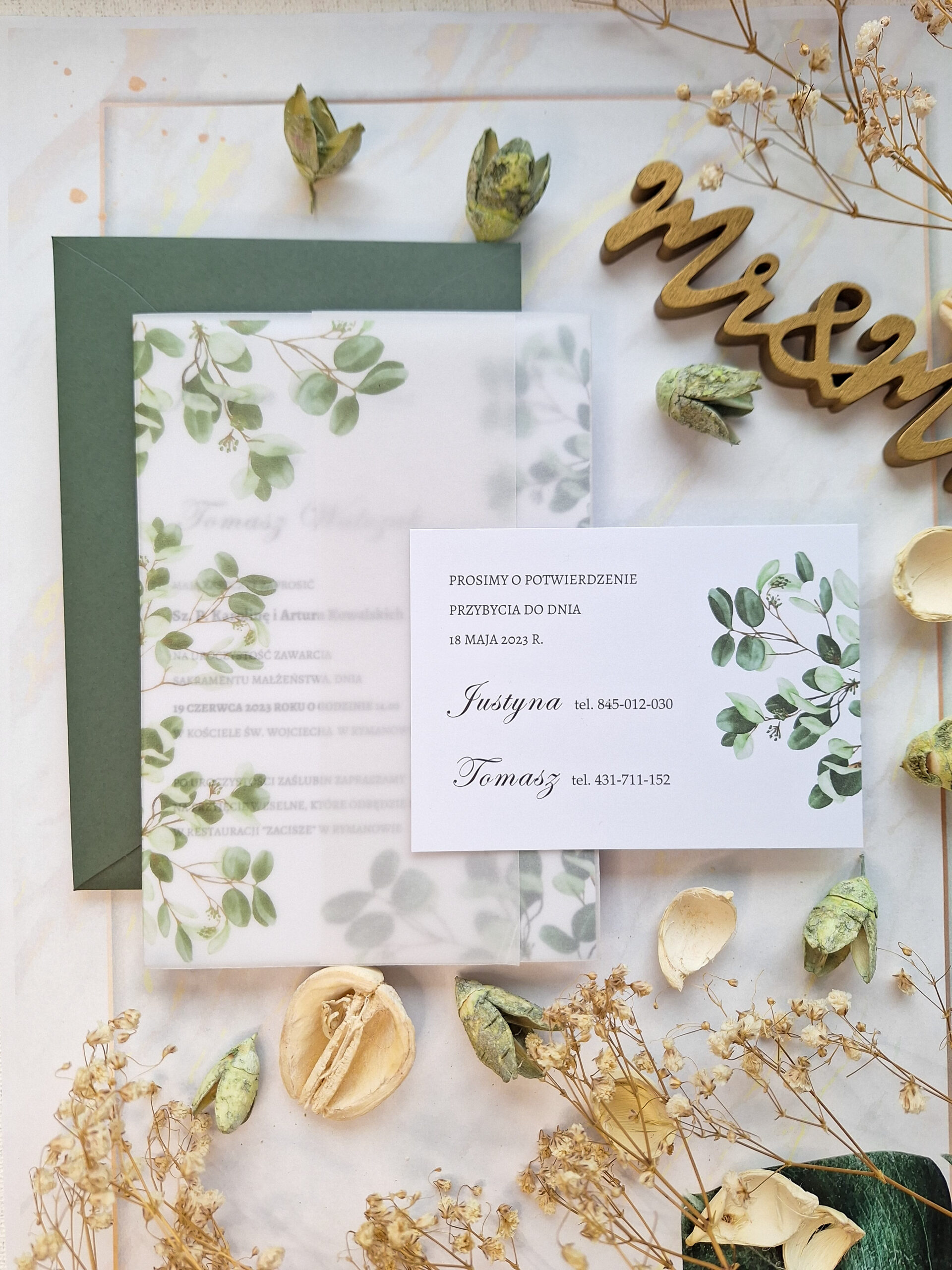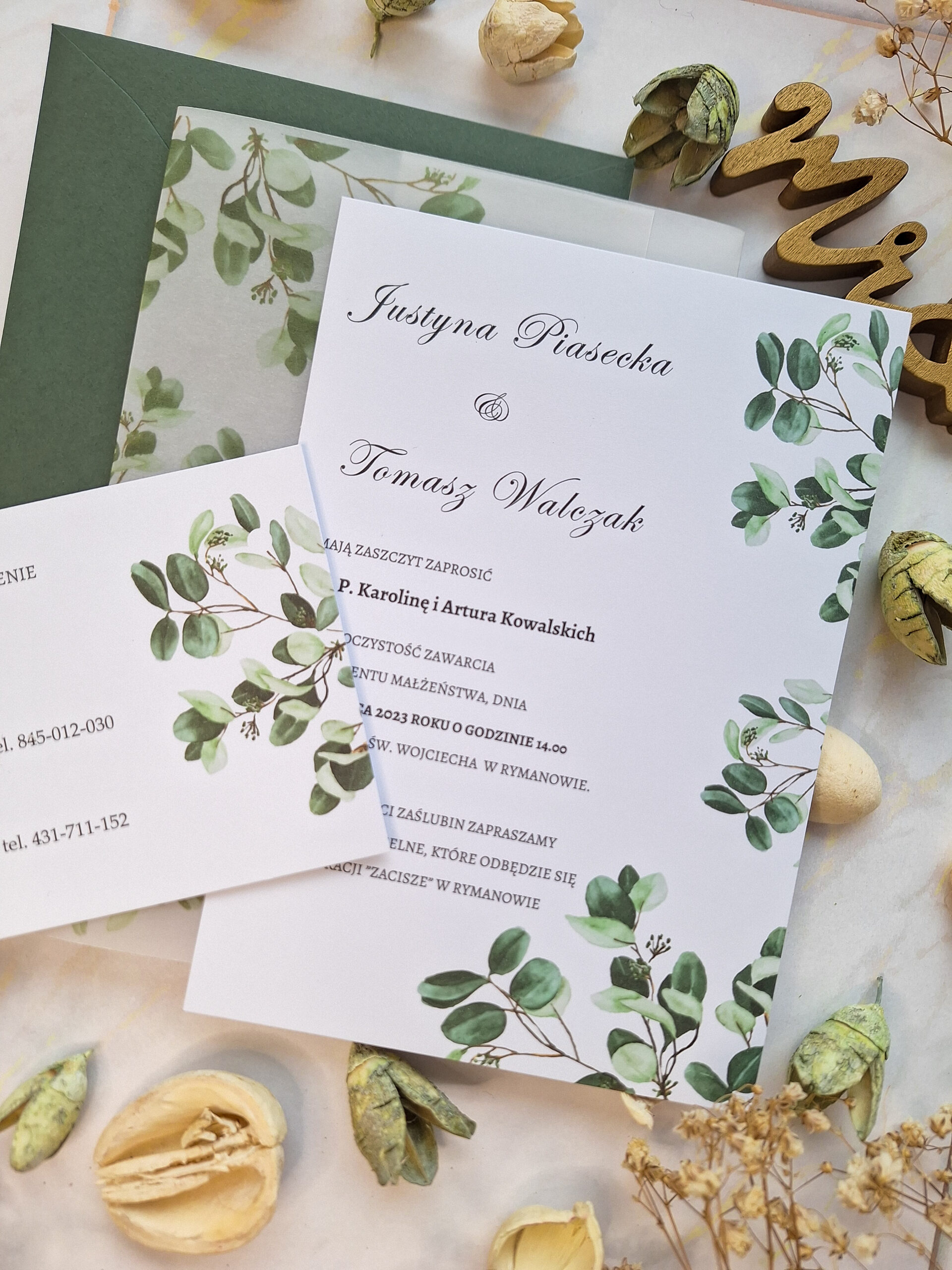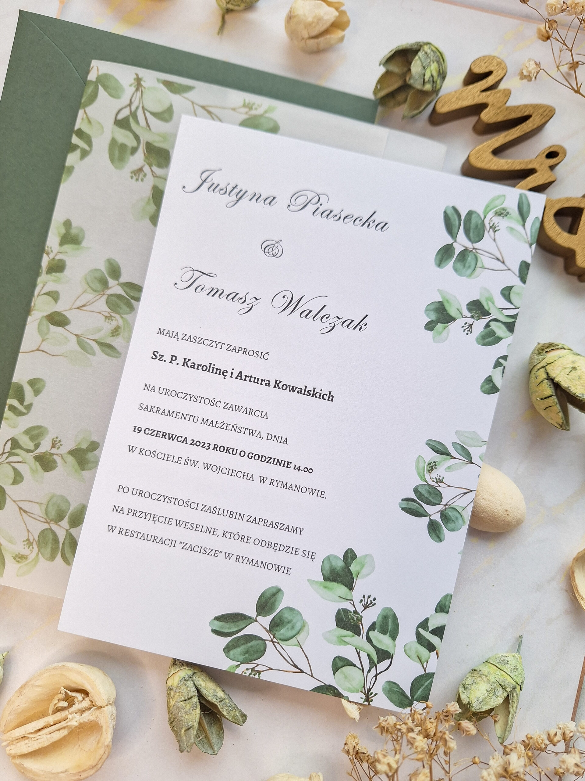 - kopertę- jasnozielona, zgnity zieleń, butelkowa zieleń lub biała pasująca do zaproszenia,