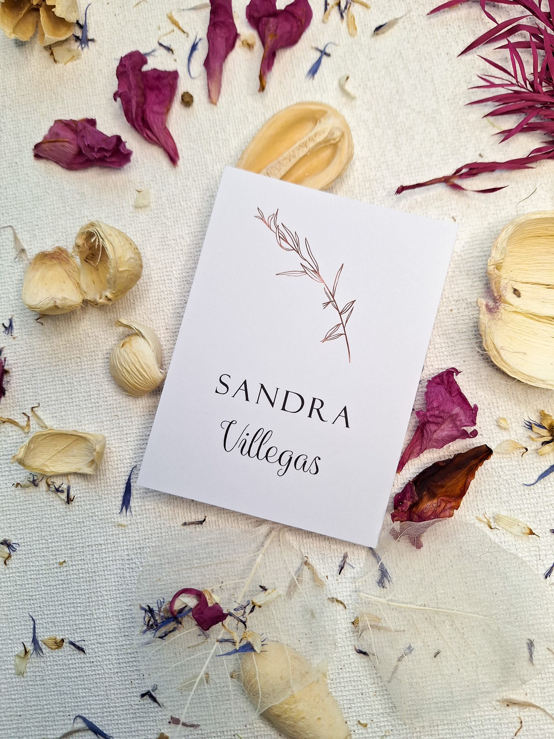 Drukowane jednostronnie na sztywnym matowym papierze 300 g/m2 (kolor papieru oraz grafika dowolna – dopasujemy do twoich zaproszeń).