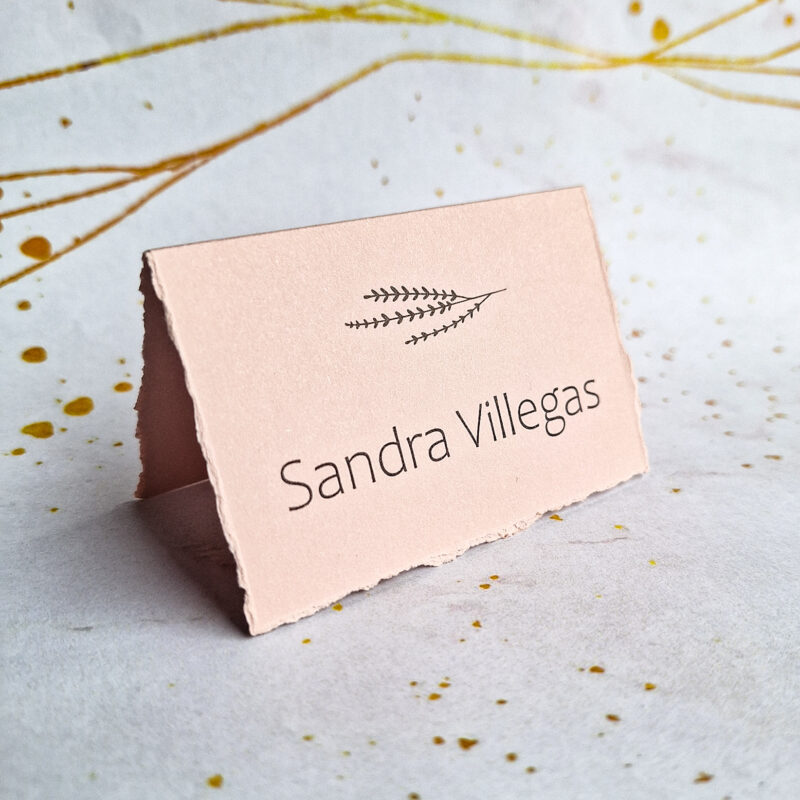 Klasyczna winietka składana, drukowana jednostronnie z rwanymi brzegami Kolor papieru dowolny: róż, biały, kremowy Informacje o produkcie: Wymiary : Złożona około 11×5,5 cm Papier : Biały, matowy 300 g/m2 Czcionka dowolna (przykładowe czcionki wysyłamy po zakupie) Minimalna zamówiona ilość 30 sztuk
